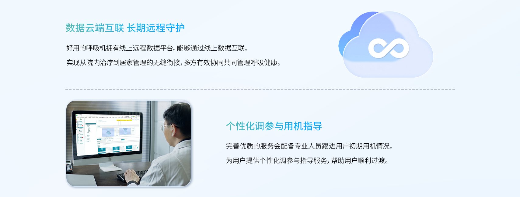 呼吸机需要长期坚持使用,因此需要有专业人员长期的服务支持,帮助用户解决用机问题。